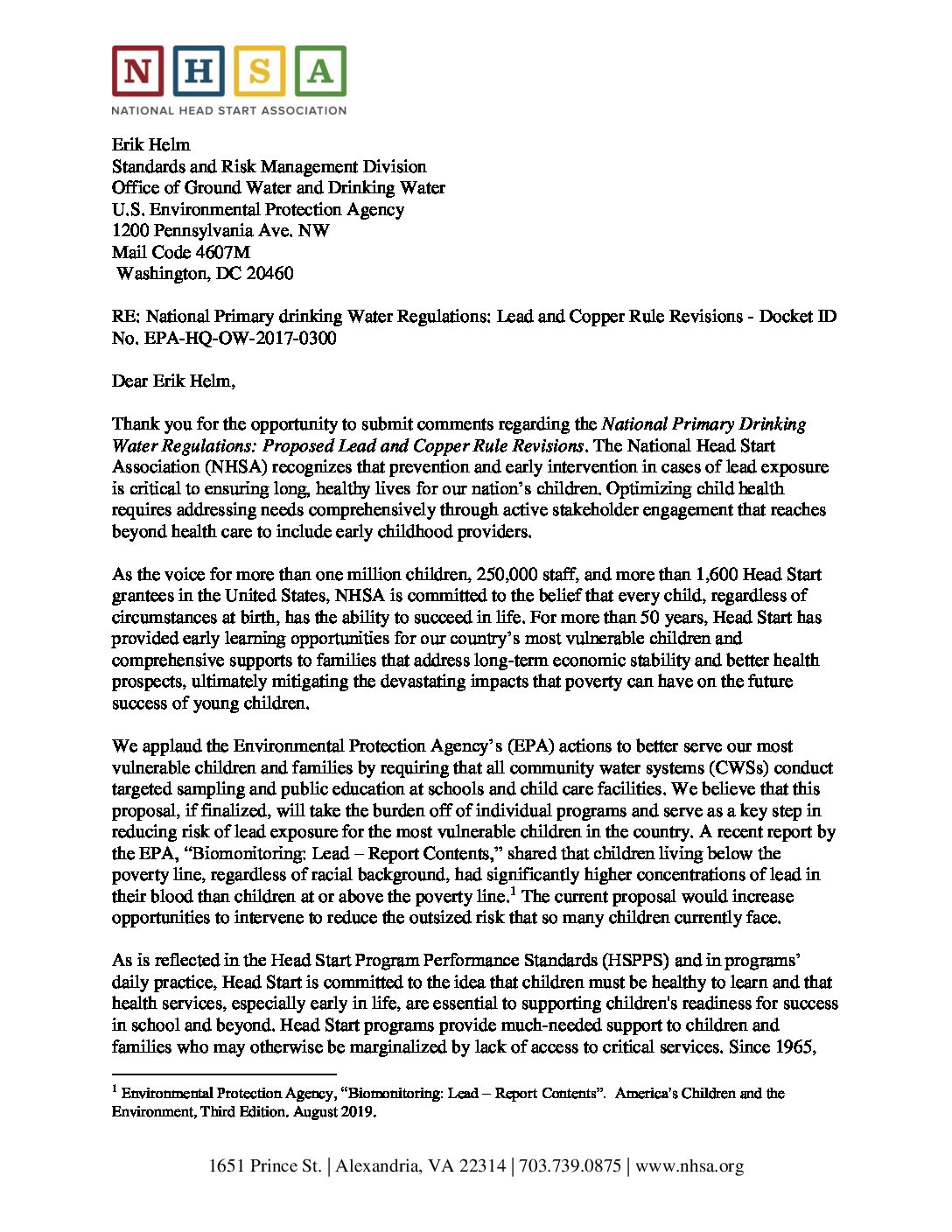 and Copper Rule Revisions (Docket ID No. EPA-HQ-OW-2017-0300).