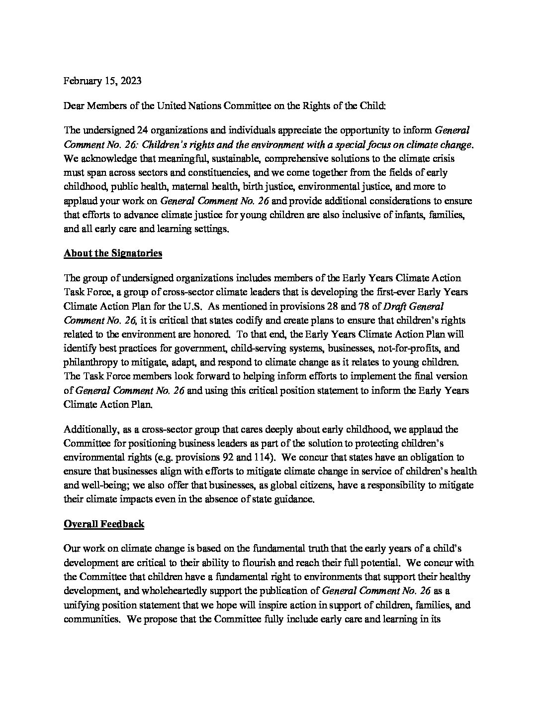 NHSA, alongside 23 organizations and individuals, submitted comments in response to the United Nations Committee on the Rights of the Child General Comment No. 26: Children’s rights and the environment with a special focus on climate change.
