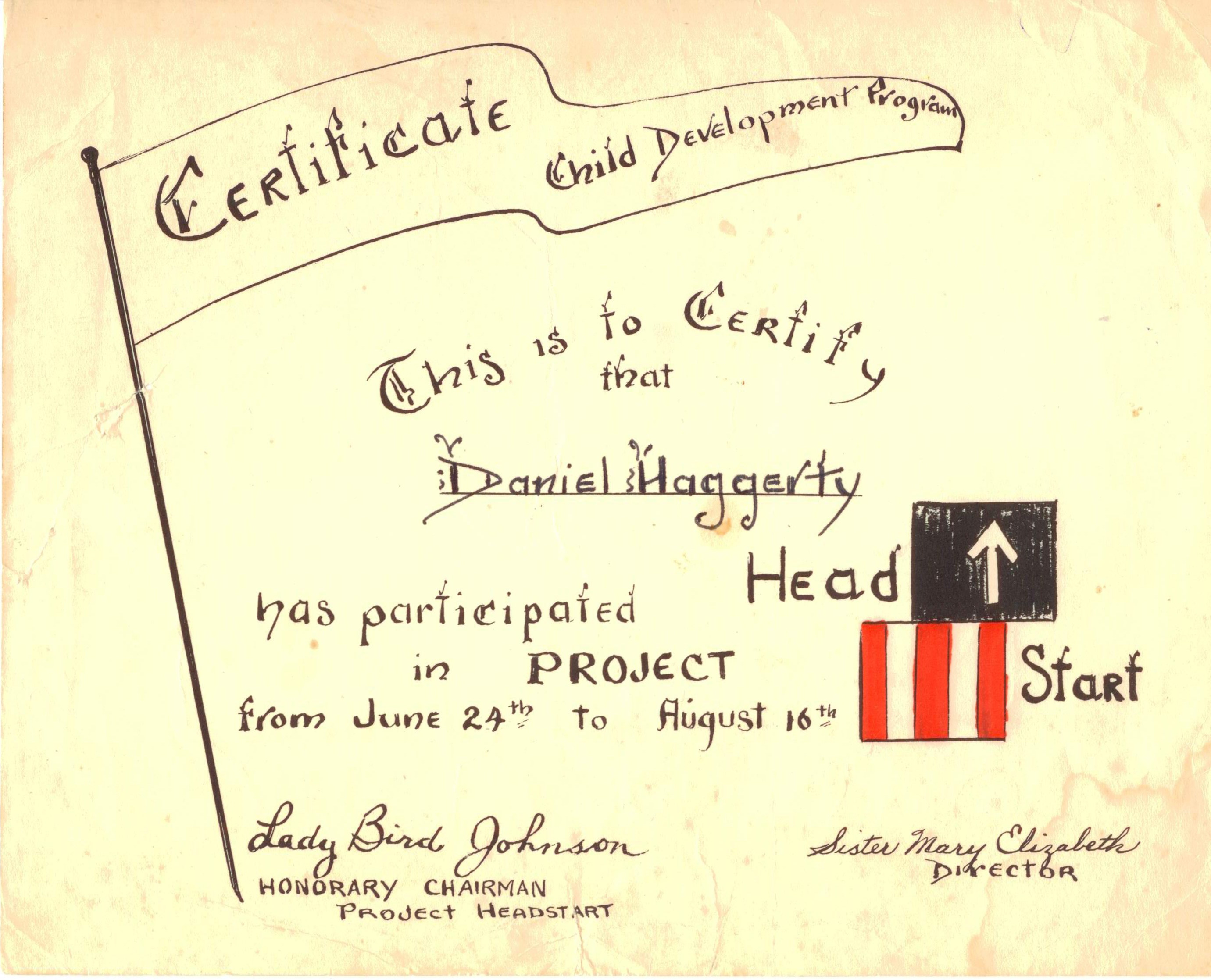 "I was very proud of the graduation cap and certificate. I took them with me when we later moved back to Iowa. I still have the certificate, which has Lady Bird Johnson's signature imprinted."