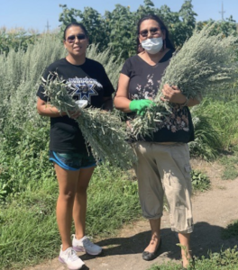 To preserve Native American traditions, knowledge, and cultural practices, the community grew sage in the garden. Sage is a sacred element of many AIAN cultures, typically used in native rituals. Tribal College President Cynthia Lindquist participated in the sage harvesting event at the community garden. She spoke about how sage is essential in smudging and making head, wrist, and ankle wreaths for the sun dance ceremony. Community members joined in with expressions of gratitude and prayers.