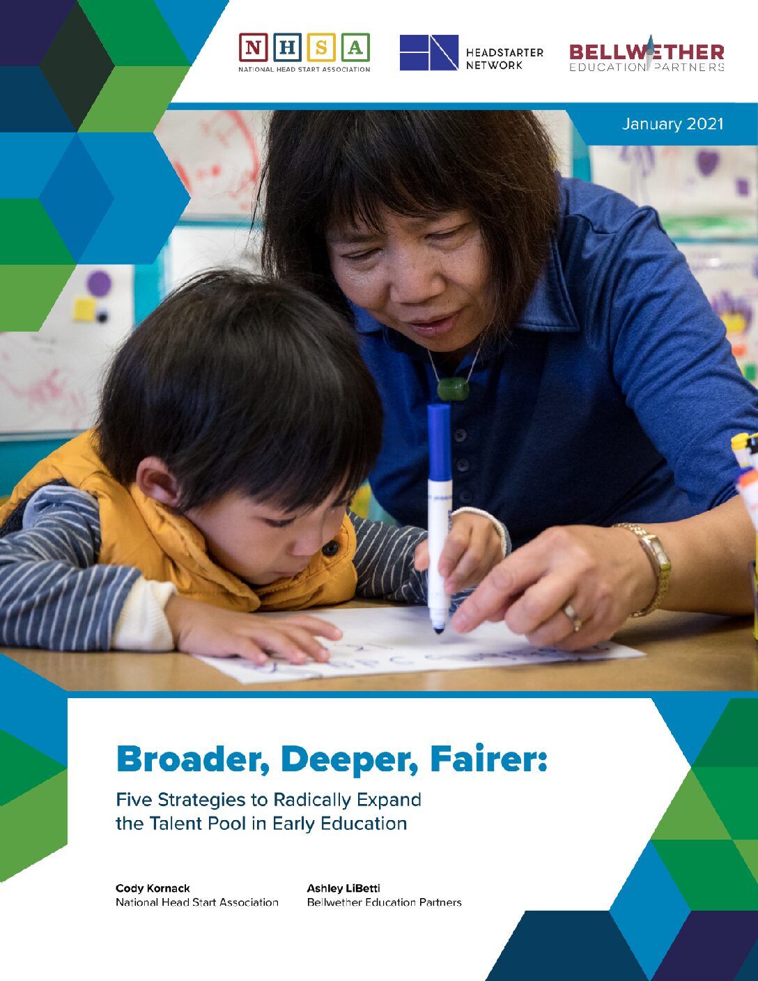 Published in partnership with the HeadStarter Network and Bellwether Education Partners, NHSA’s “Broader, Deeper, Fairer: Five Strategies to Radically Expand the Talent Pool in Early Education” report explores how early childhood educator preparation could be improved for the educators themselves, as well as for the children and families they serve.