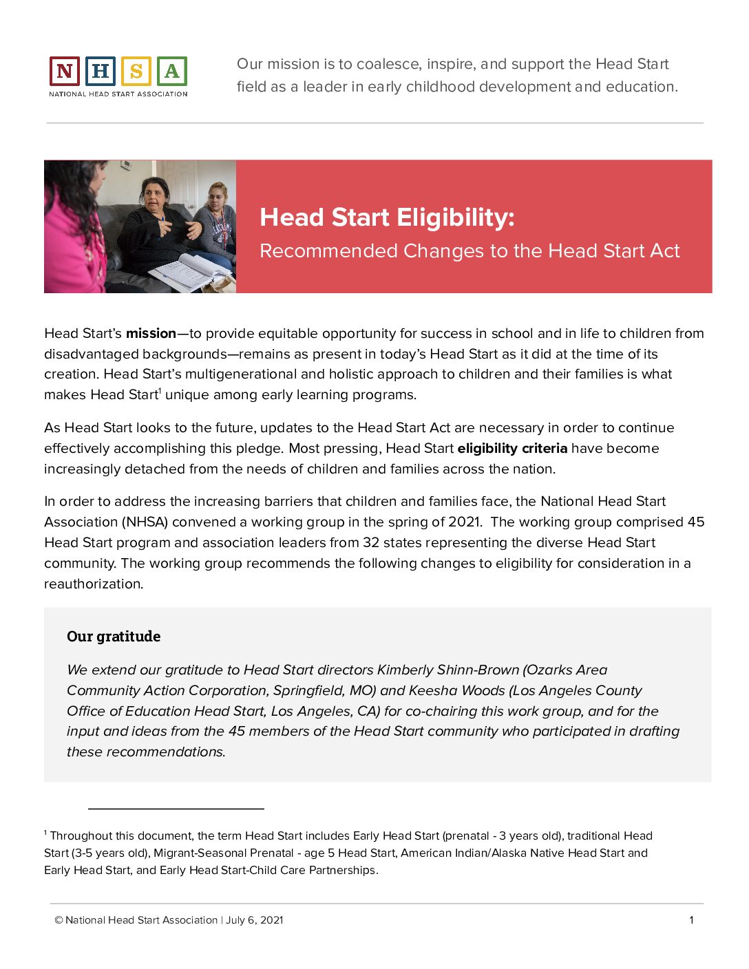 Head Start was last reauthorized in 2007 and the eligibility requirements are in desperate need of modernization.