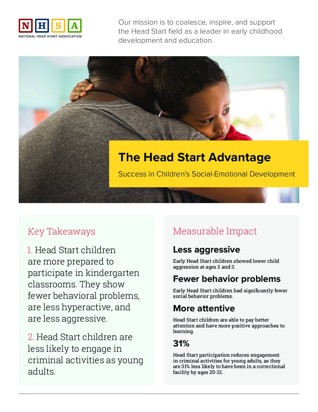 Download the Social-Emotional Advantage fact sheet, explore the research citations, and dig deeper into the Head Start Advantage.