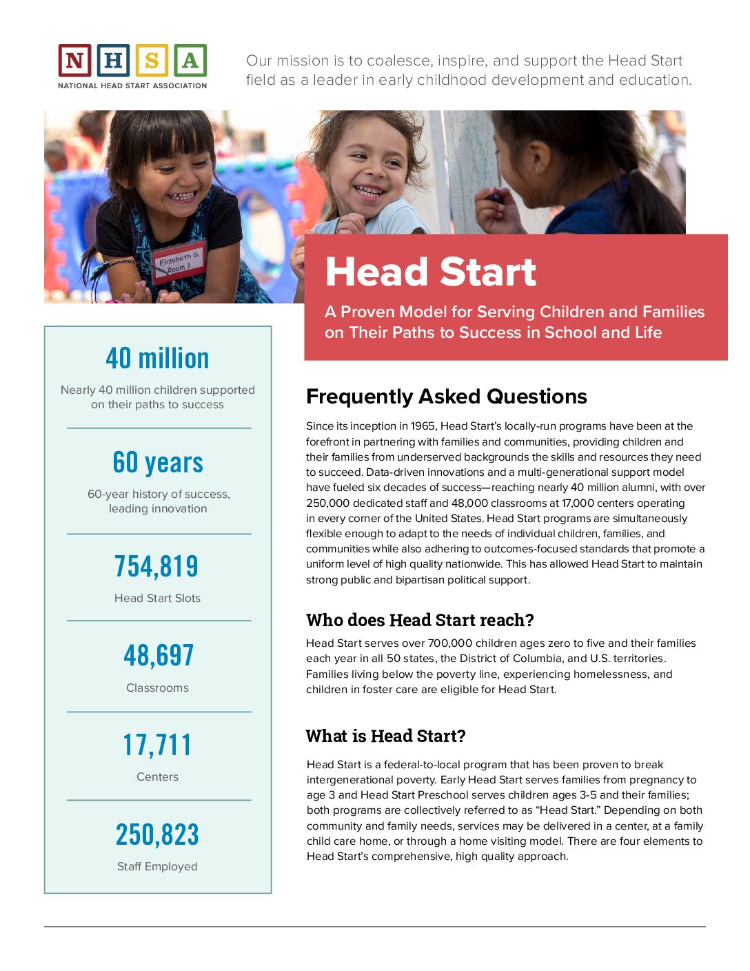 Download the Head Start and Early Head Start overview for more information about Head Start services and comprehensive approach