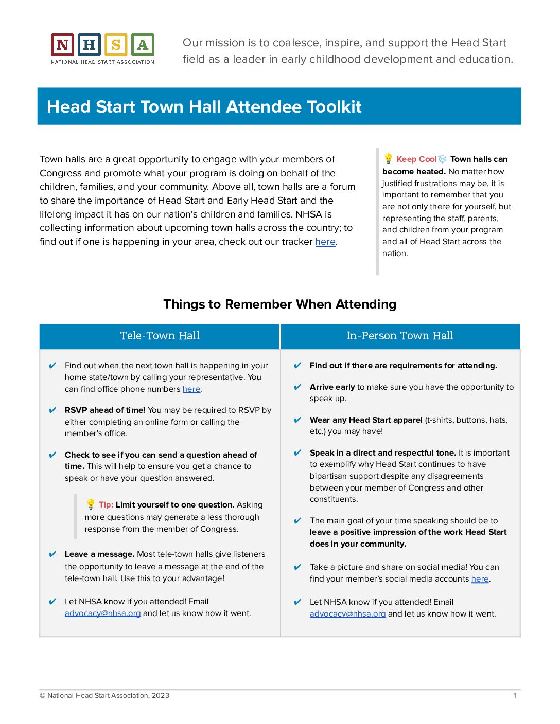 ⭐ The Town Hall Toolkit now includes Early Head Start talking points for directors, staff, and parents. For additional messages, facts, and figures on Early Head Start, please see NHSA’s Early Head Start Advocacy Toolkit.
