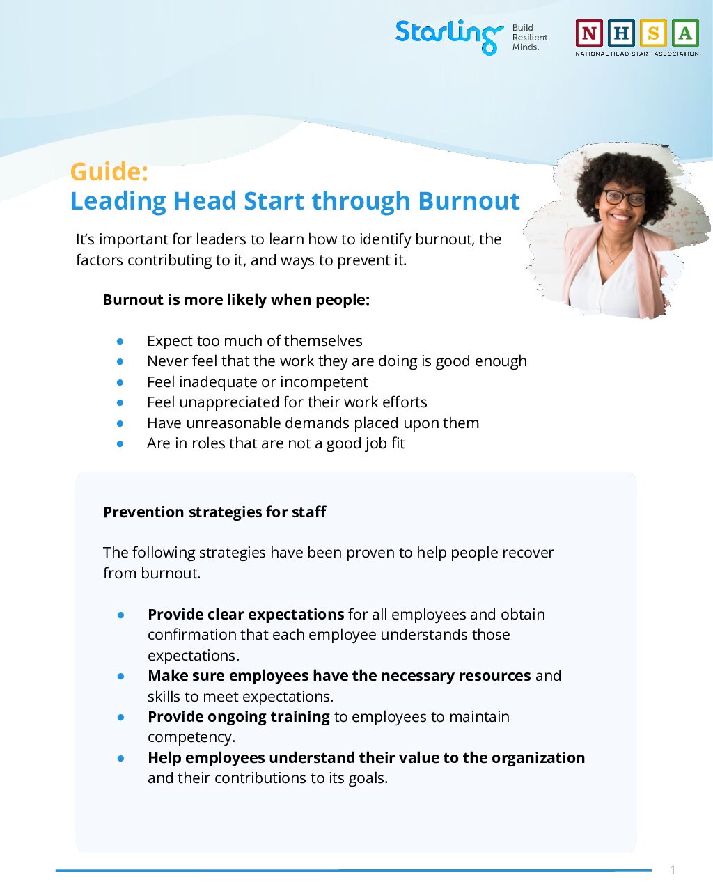 We are here to help. Read this guide and discuss how to prevent burnout within your role as a leader.
