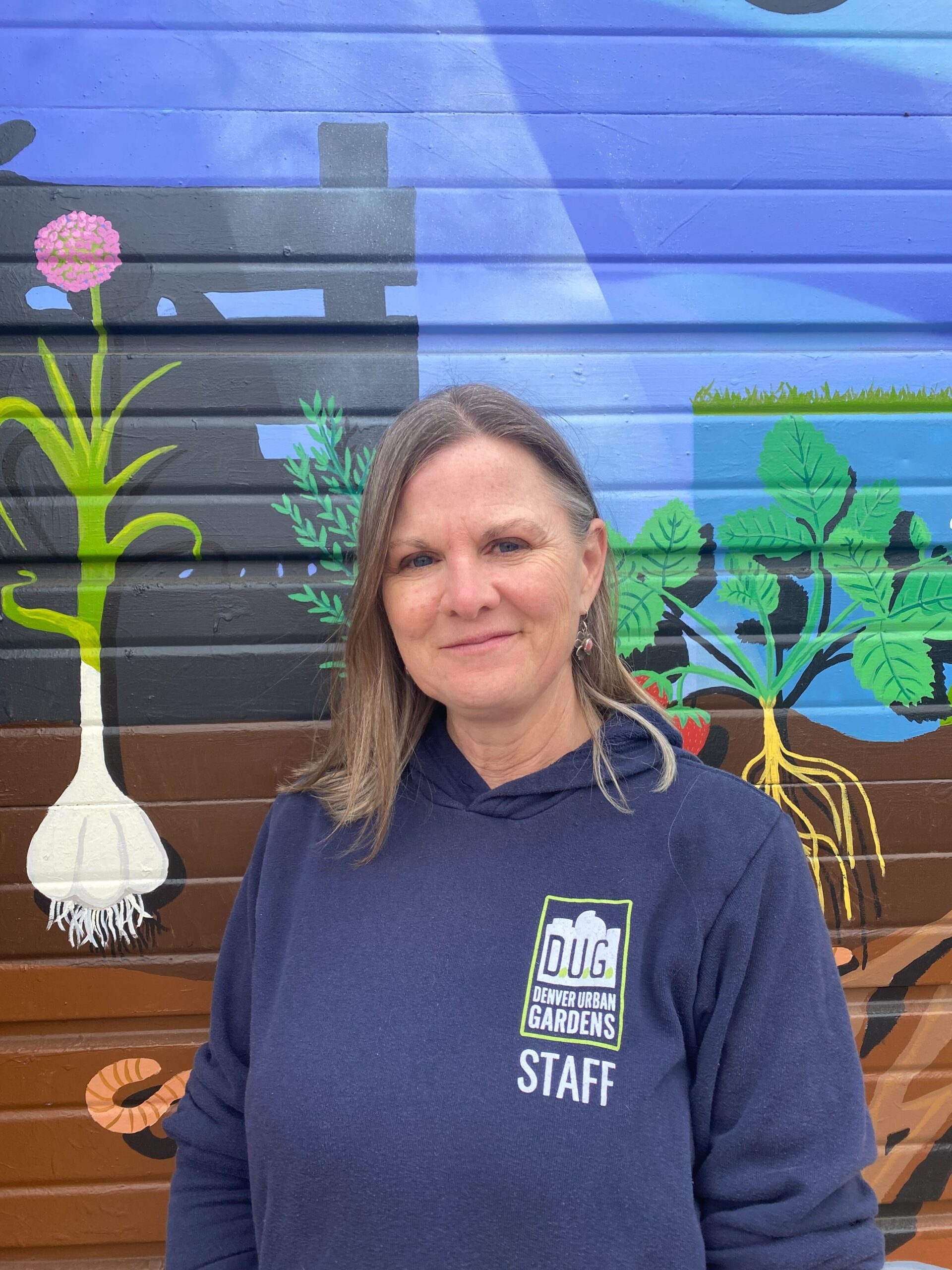 Lara Wirtz Fahnestock (she/her), DUG’s Director of Therapeutic Gardens, has a passion for building community, teaching children where their food comes from and finding places of beauty and healing wherever she can. Lara joined Denver Urban Gardens as a Garden Leader in 2010 and DUG staff in 2015. In her nine years at DUG, she has worked with Garden Leaders and garden projects and now oversees DUG’s Therapeutic Garden Initiative. She has a BA in Biology from the Colorado College, a certificate of Authentic Leadership from Naropa University, is a Licensed Massage Therapist specializing in trauma healing and is a Horticulture Therapy Practitioner.